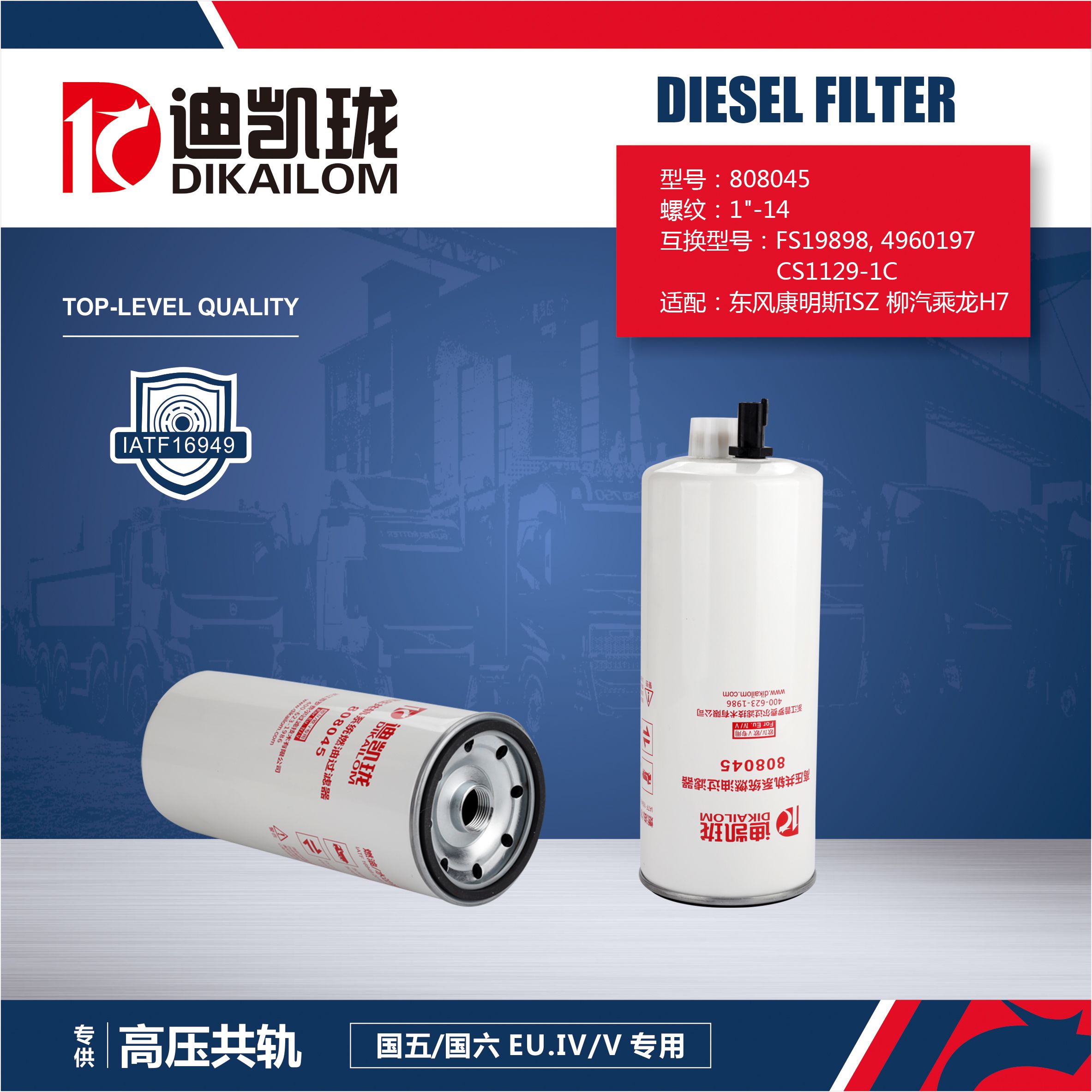 弗列加:FS19898 康明斯:4960197 敦克曼:CS1129-1C
